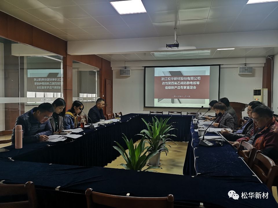 2019年12月1日公司召开浙江省省级新产品专家鉴定会,对改性聚四氟乙烯防静电板等五个省级新产品进行鉴定,鉴定委员会听取了承担单位的试制工作及技术总结、产品检测、科技查新、用户使用等报告,查看了样品和生产现场,审阅了相关资料。 经讨论,鉴定委员会认为,该五个产品的开发是成功的,同意通过新产品鉴定。